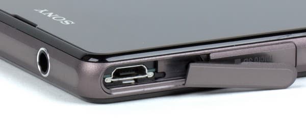 Нет у Sony Xperia Z1 Compact и съемной задней крышки — все слоты для карточек располагаются по бокам устройства. Карта памяти и SIM-карта вставляются в боковые щелевые слоты привычными способами: карточку памяти при нажатии на нее захватывает подпружиненный механизм, а SIM-карта въезжает в свой разъем на пластиковом выдвижном подносике. Данный способ крепления SIM-карты у Sony является наиболее удобным из всех других вариантов бокового крепления, потому что для изъятия карточки нет необходимости прибегать к помощи каких-либо дополнительных инструментов вроде скрепки или пинцета — пластиковый подносик имеет удобный уступ для захвата ногтем и выдвигается без малейших усилий. SIM-карта здесь используется формата Micro-SIM, карта памяти — формата microSD, поддерживаются карточки объемом до 64 ГБ.