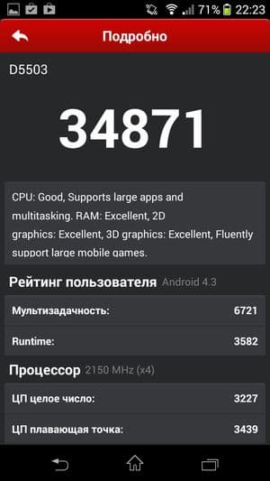 | AnTuTu 4.х (больше — лучше) | 34871 | 20520 | 23079 | 35040 | 24704 | 34105 |