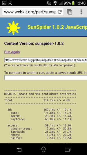 Что касается бенчмарков для оценки скорости движка javascript, то стоит всегда делать скидку на то, что в них результаты существенно зависят от браузера, в котором запускаются, так что сравнение может быть истинно корректным только на одинаковых ОС и браузерах, а такая возможность имеется при тестировании не всегда. В случае с ОС Android мы всегда стараемся использовать Google Chrome.