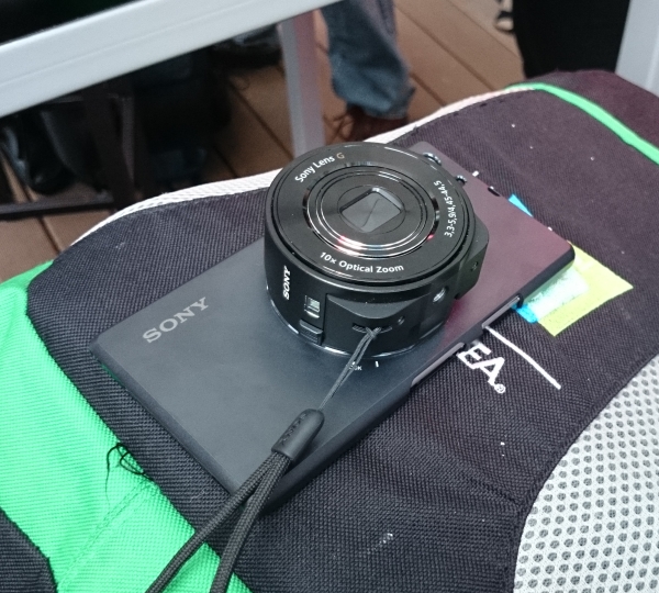 А вот за дополнительные деньги к новой модели предлагается такое количество аксессуаров, что им даже был посвящен отдельный буклет. Помимо стандартных док-станции, bluetooth-гарнитуры, портативного блока питания, беспроводной колонки и даже штатива, там также имеется и несколько более любопытных вещичек. Например, к смартфону можно приобрести дополнительный пластиковый чехол с хитроумным крепежем для еще более непривычной детали — камеры DSC-QX100. Это устройство представляет собой отдельно работающую (не связанную с линзами самого смартфона) фотокамеру, которая, тем не менее, может работать в связке с программным обеспечением аппарата, соединяясь с ним по беспроводной сети. Любопытное устройство требует, очевидно, отдельного тестирования, но к нам в руки оно пока не попало. Вот так все это выглядит вживую в полной сборке: на сам смартфон сзади надевается твердая пластиковая обложка, а к ней уже, в свою очередь, крепится камера.