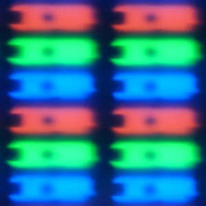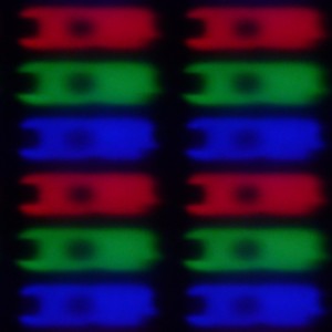 Можно заметить, что по мере уменьшения яркости оттенка темное пятно в центре каждого субпикселя увеличивается, что предполагает поворот ЖК к центру субпикселя, а не в горизонтальной плоскости, как в случае IPS, или в вертикальной плоскости, как в случае *VA. По всем внешним признакам экран этого смартфона очень похож на экран Sony Xperia Z. Напомним, что результаты детального очного сравнения экрана Sony Xperia Z с экранами трех других топовых смартфонов приведены в отдельной статье.