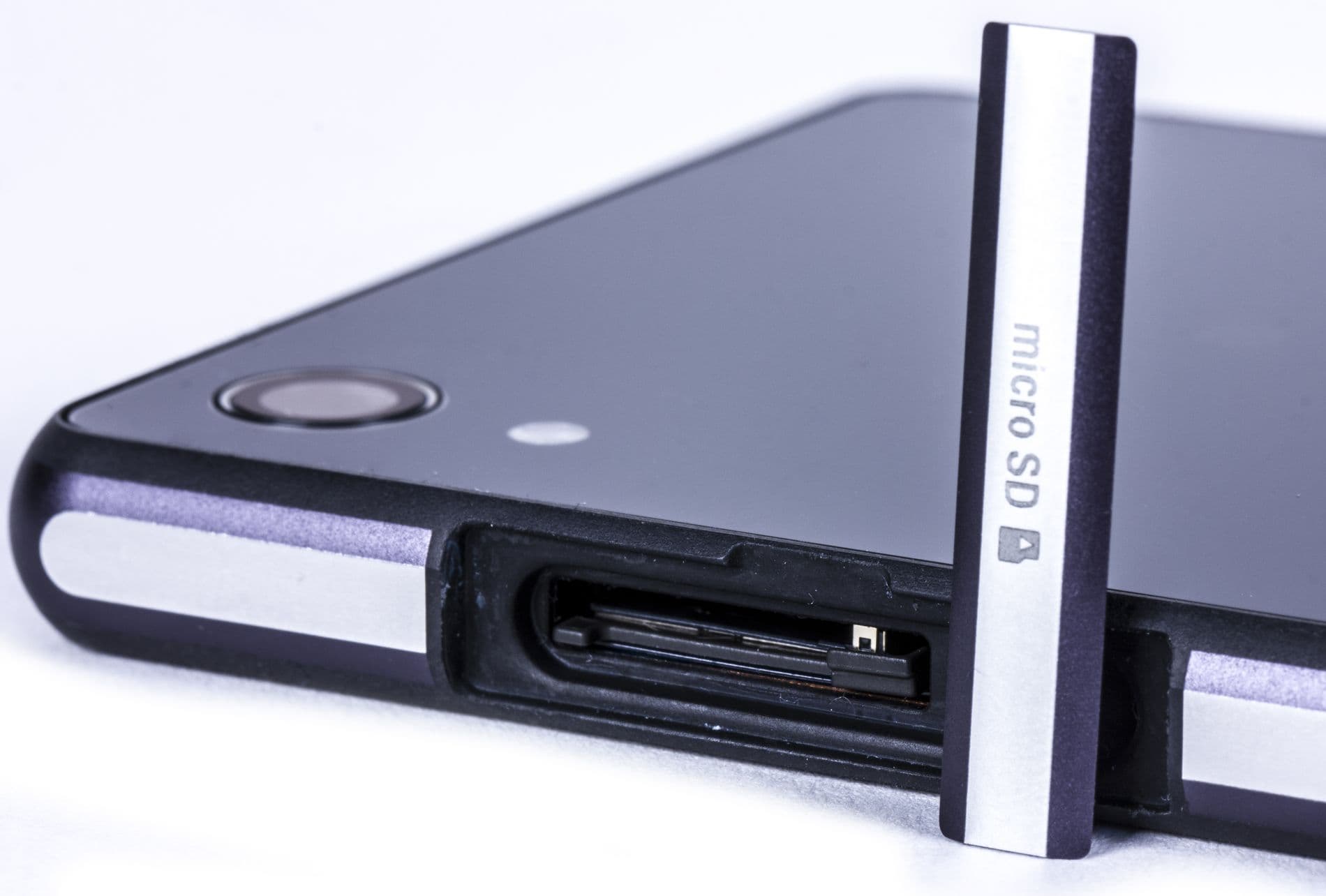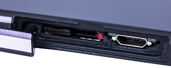 SIM-карта здесь вставляется в собственный боковой слот, оборудованный пластмассовым выдвижным подносиком, в который эта карточка закладывается. Никаких потайных кнопок здесь вдавливать не нужно, равно как не нужно носить с собой скрепку — подносик просто вытягивается наружу с помощью ногтя. Пожалуй, способ установки карточек в мобильных аппаратах Sony Mobile является наиболее удобным.