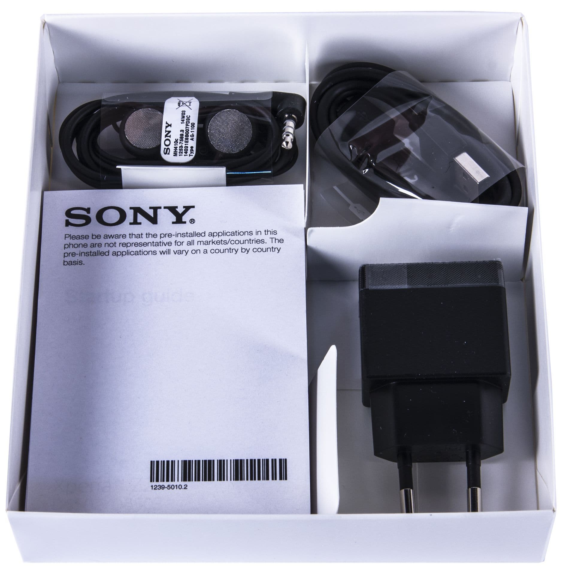 Комплектация стандартна: компактное зарядное устройство (выходной ток 1,5 А), соединительный кабель, обыкновенные наушники без дополнительных амбушюр и толстая пачка бумажной документации. Это самый скромный комплект из всех возможных: например, на азиатский рынок Sony Xperia Z2 поставляется в гораздо большего размера коробке из твердого лакированного картона, в которой содержится более богатый комплект аксессуаров, вплоть до наличия в нем док-станции. В случае с российским рынком ничего такого в комплекте не нашлось, а жаль: такая док-станция совсем не помешала бы и отечественным пользователям.