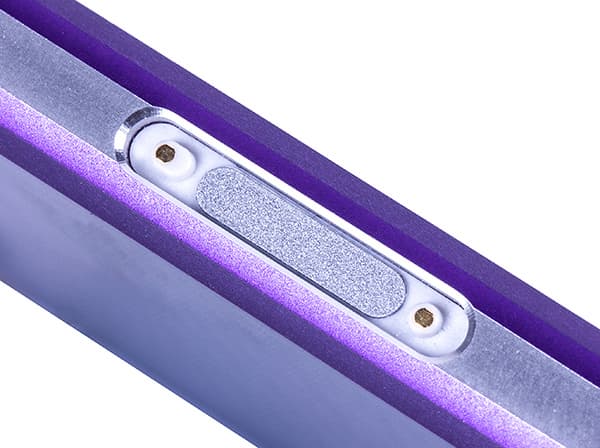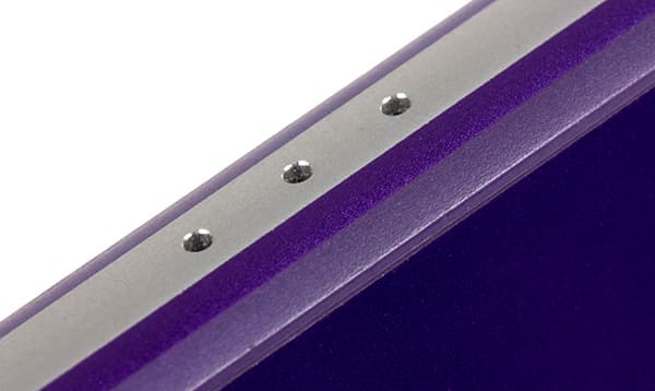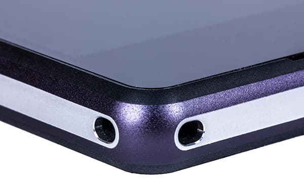Корпус новинки, как и у предшественников, представлен в трех цветовых исполнениях: черном, белом и фиолетовом. Любопытно, что скосы боковых граней металлической рамки здесь выкрашены в общий цвет корпуса, то есть если корпус фиолетовый, то и скосы боковин тоже фиолетовые, а вот самая верхняя кромка всегда остается серебристой и неокрашенной.