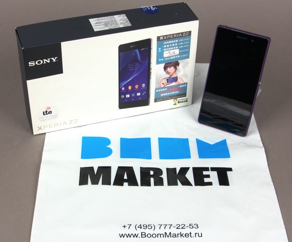 Присланный нам на тестирование комплект Sony Xperia Z2 выглядит точно так же, как и у предшествующих продуктов серии: смартфон упакован в достаточно простую внешне, ставшую уже классической для последних продуктов мобильной линейки Sony плоскую и квадратную коробку из тонкого нелакированного картона с несколькими отделениями внутри.