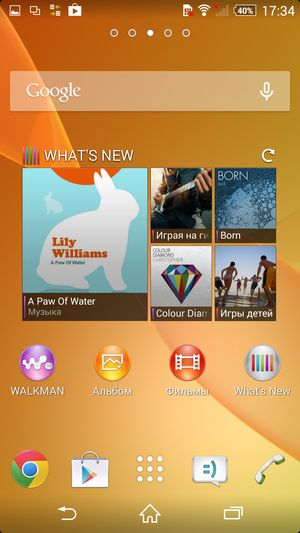 В качестве операционной системы используется свежая версия программной платформы Google Android 4.4.2 KitKat, поверх которой традиционно установлен собственный фирменный графический пользовательский интерфейс. Он не так сильно видоизменяет внешний вид и организацию всех элементов, как HTC Sense, и в то же время не так насыщен различными функциями и режимами, как интерфейс в аппаратах Samsung. Оболочка Sony в обновленной версии (ее, кстати, получили и предыдущие топовые модели, например Xperia Z Ultra) заимела кое-какие улучшения и дополнения, но в целом сохранила свои основные отличительные признаки: серьезность общего внешнего вида, лаконичность всех меню и подменю, а также знакомый традиционный набор фирменных предустановленных приложений.