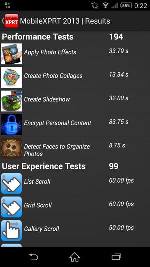 | Mobile XPRT 2013 (больше — лучше) | 194/99 | 233/94 | 210/87 | 212/92 | 165/63 |