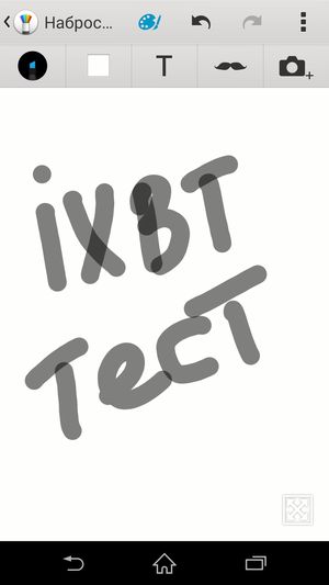 Набор предустановленных программ в смартфонах японской компании не слишком заметно меняется от трубки к трубке. Несколько онлайн-сервисов, таких как TrackID, Sony Select, What’s New, предлагают выбрать, купить и сразу запустить музыку, фильмы и игры. Timescape собирает информацию о социальной активности друзей. Имеется файловый менеджер, пакет для работы с офисными документами, нашлись также сканнер QR-кодов и популярная программа для создания заметок Evernote. Очень удобно, что Sony всегда предустанавливает полезную программу для полноценного бэкапа и восстановления как настроек, так и других данных. При запуске программы под любопытным названием «Набросок» появляется набор инструментов для рисования и рукописного ввода. Здесь можно выбрать кисти, краски, цвета, толщину линий, фактуру и т. д. Функциональность напоминает таковую у знаменитого стилусоориентированного Samsung Galaxy Note, только гораздо скромнее по возможностям, и здесь быстрая запись длинных текстов невозможна ввиду задержки (лага) между прикосновением и появлением черты на экране. В этой программе можно лишь неспеша что-то нарисовать, подобрать коллаж из готовых элементов.