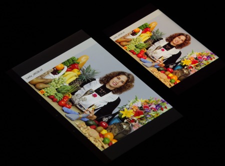 Они очень нетипичные. Впрочем, в Sony черным по белому пишут, что в этом экране используются светодиоды с синим излучателем и зеленым и красным люминофором (обычно — синий излучатель и желтый люминофор), что в сочетании со специальными светофильтрами матрицы и позволяет получить широкий цветовой охват. К сожалению, в итоге цвета изображений — рисунков, фотографий и фильмов, — ориентированных на пространство sRGB (а таких подавляющее большинство), имеют неестественную насыщенность. Особенно это заметно на узнаваемых оттенках, например на оттенках кожи. Результат приведен на фотографии выше.