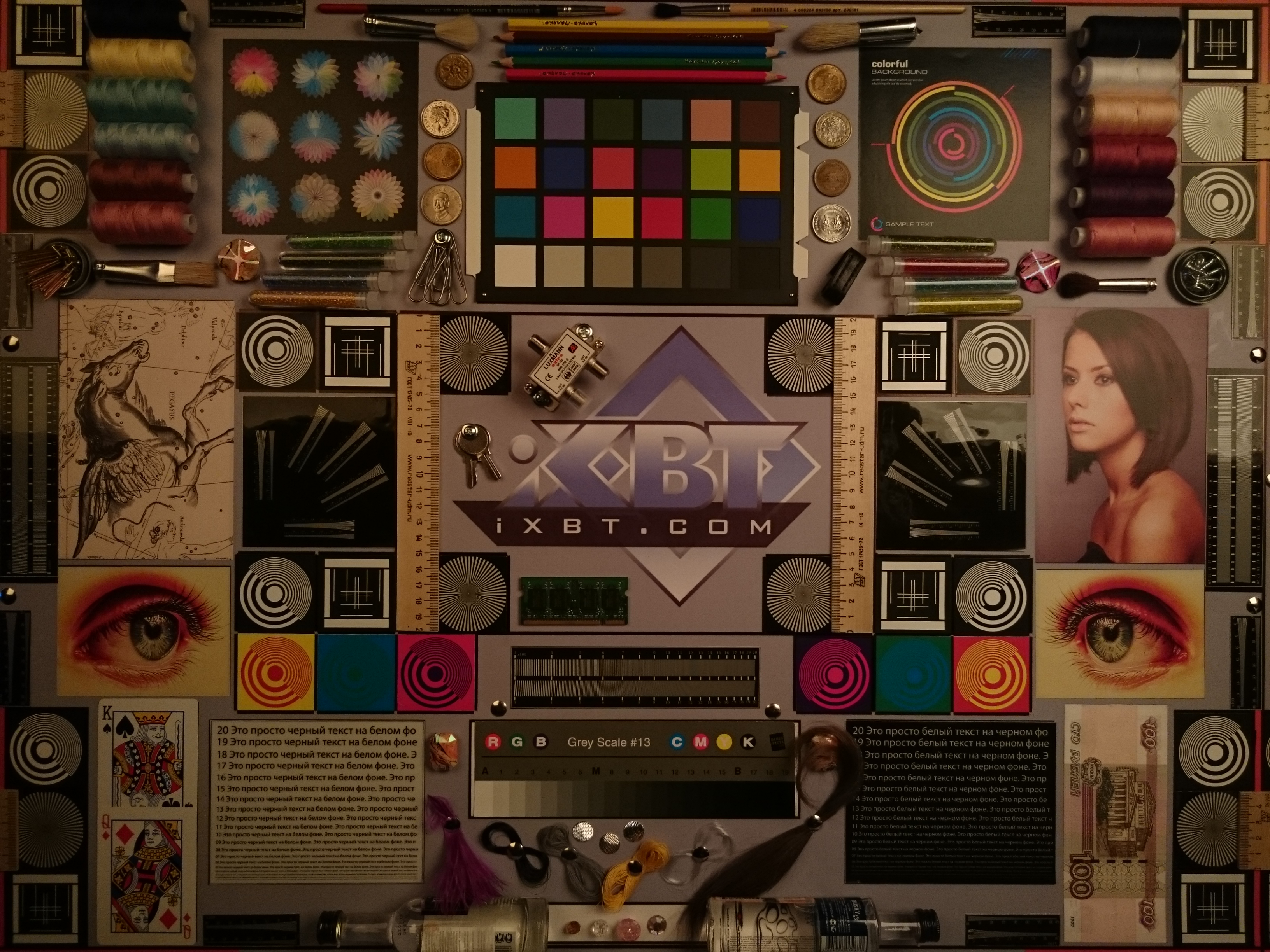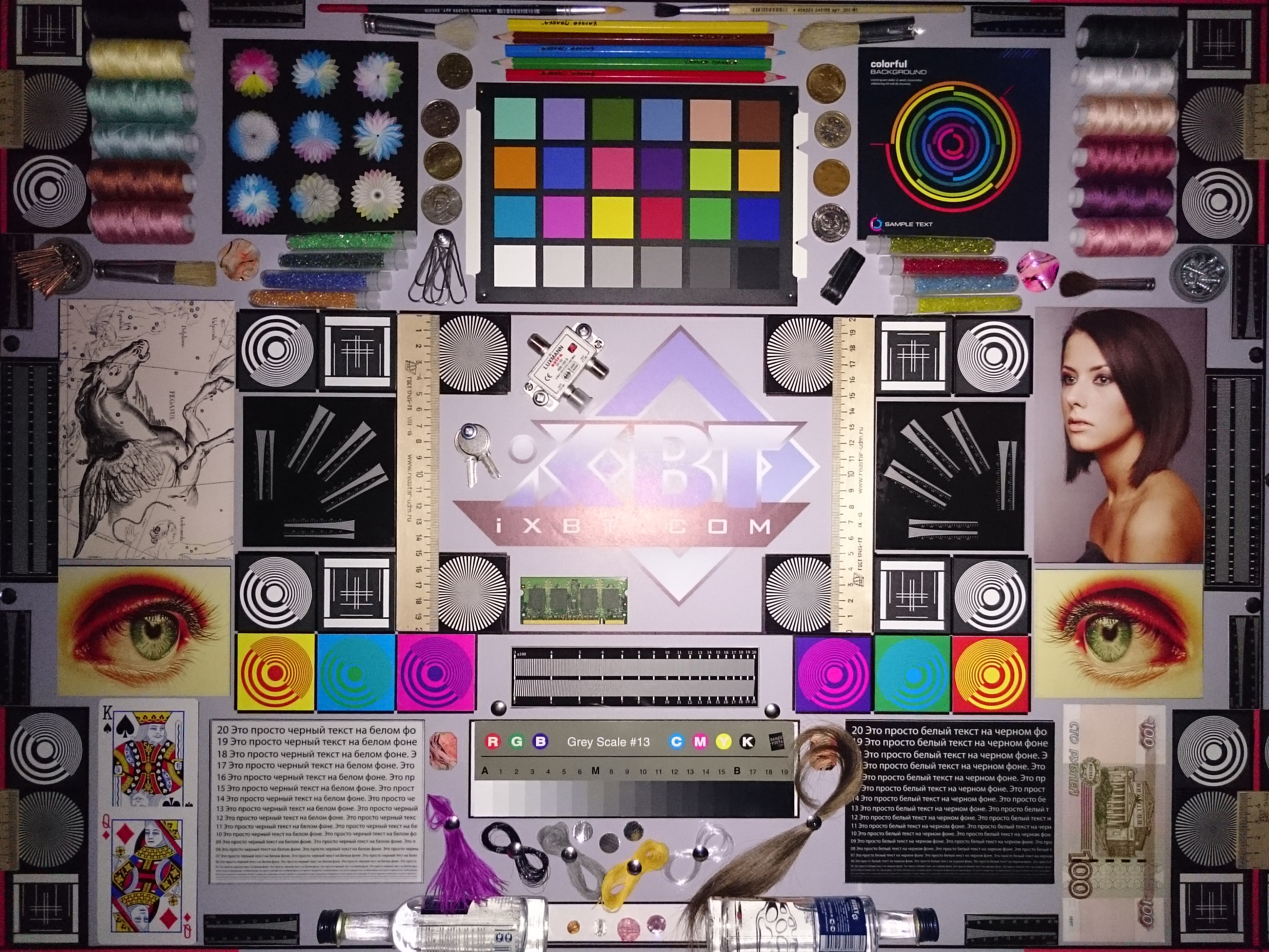 Отметим хорошую равномерность яркости и цветового тона белого поля. И тестовая картинка:
