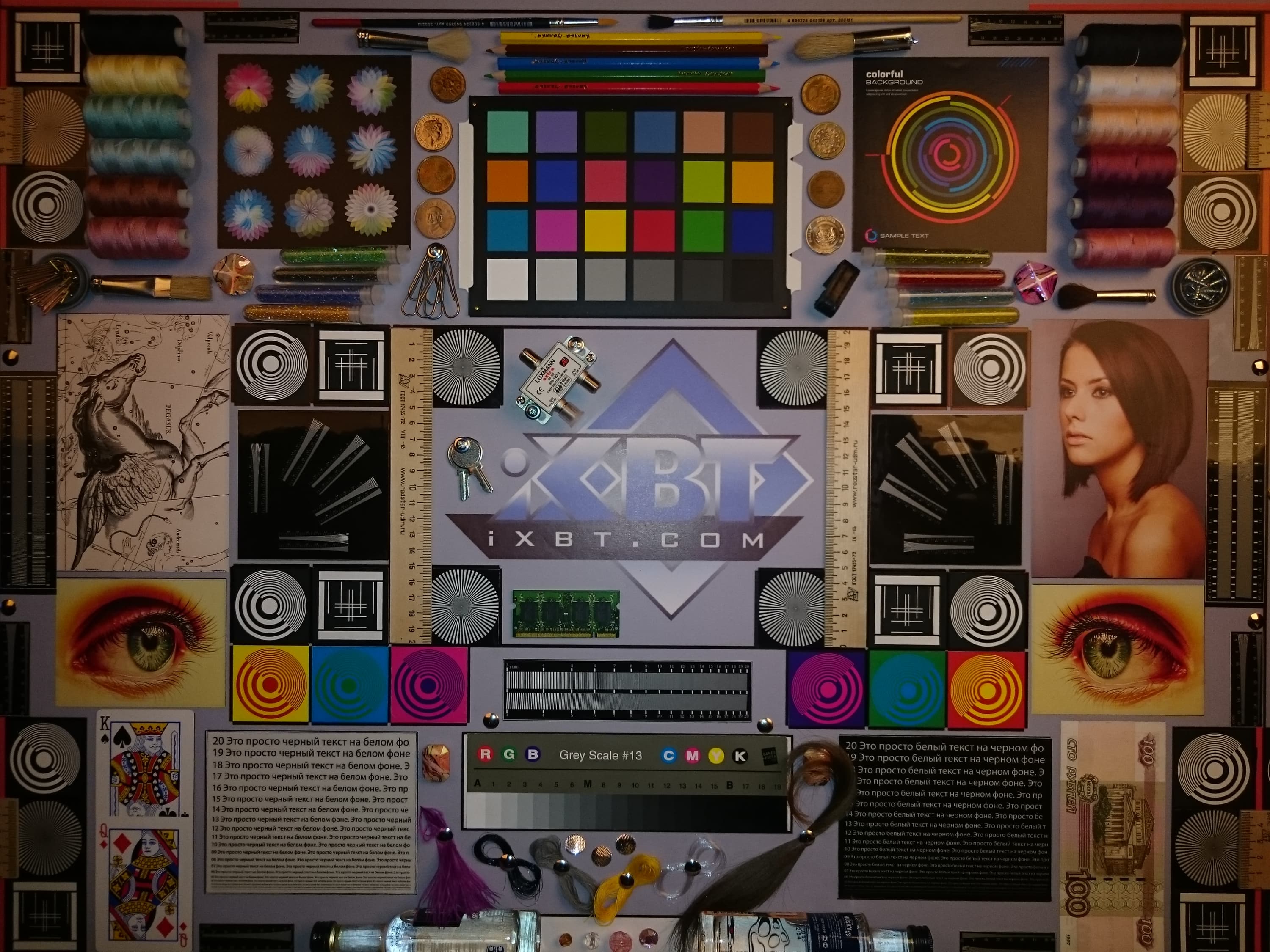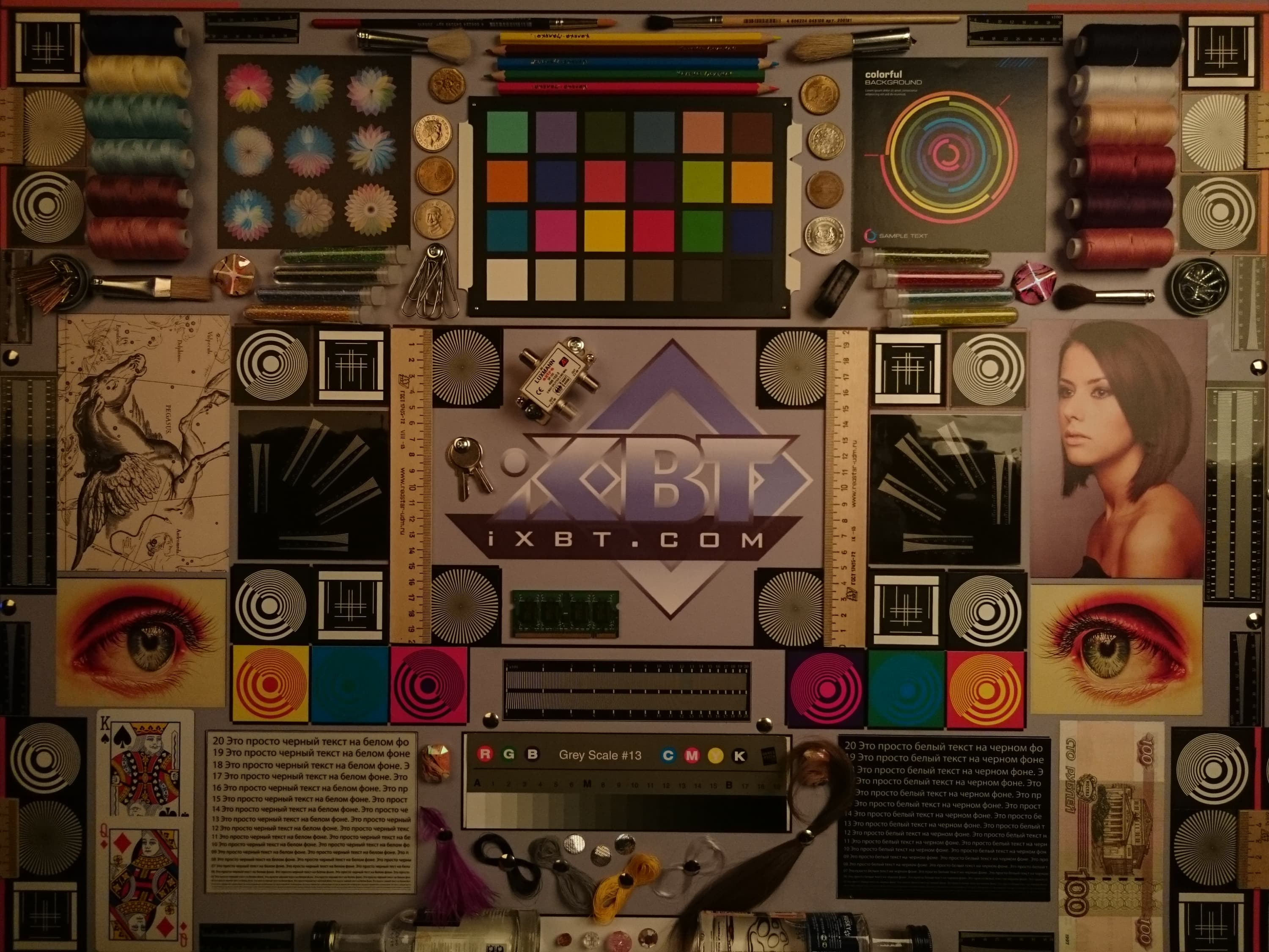 Отметим хорошую равномерность яркости и цветового тона белого поля. И тестовая картинка: