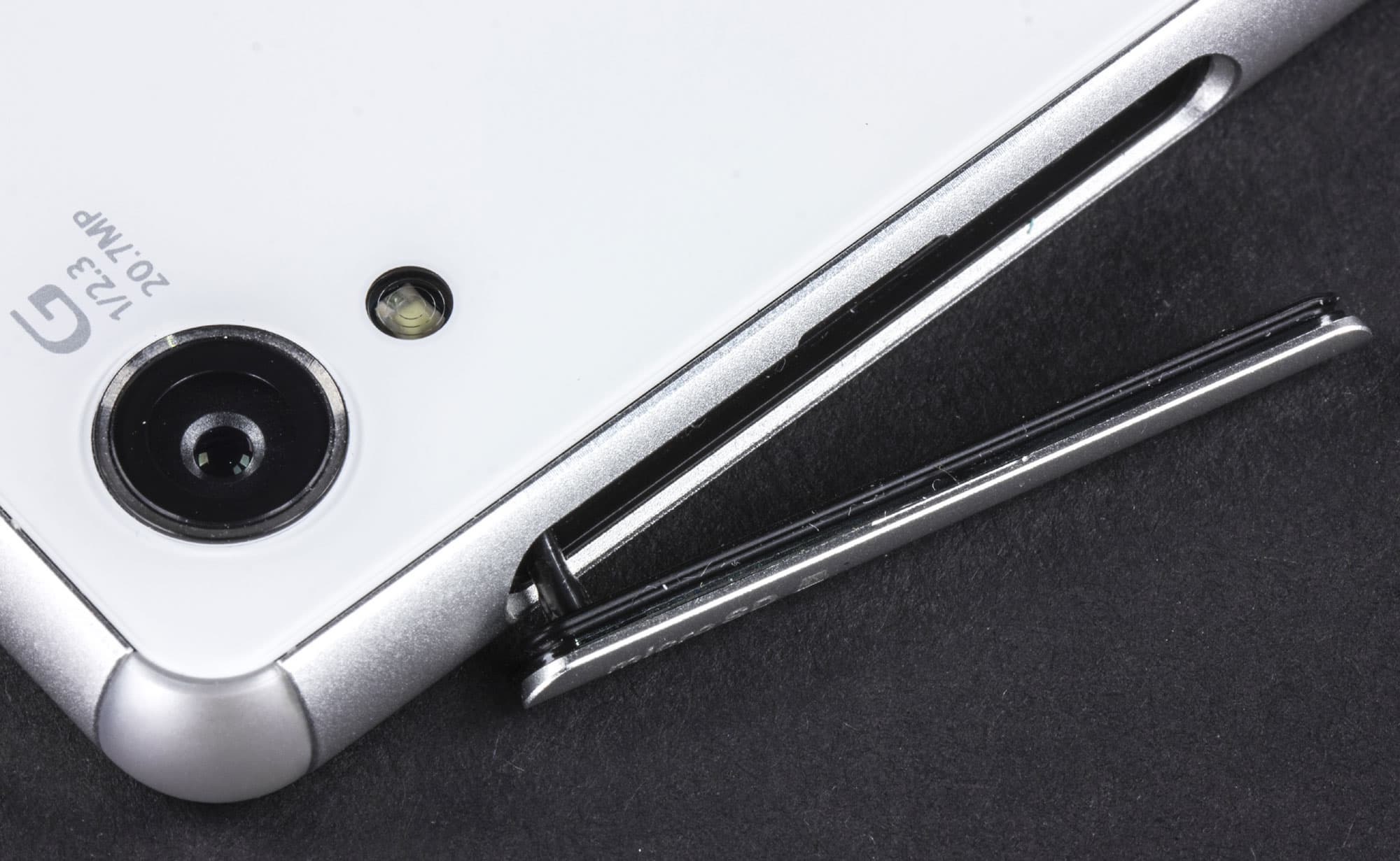 При этом в конструкцию рамки внесены даже бо́льшие изменения, чем сразу заметно глазу. Дело в том, что уголки рамки на этот раз выполнили из поликарбонатного материала, гасящего удар при падении аппарата. Теперь они играют роль этаких амортизаторов, что, по идее, должно благоприятным образом повлиять на «выживаемость» изделия после падений с высоты. Пластик этот на вид неотличим от металла самой рамки, так что в целом корпус сохраняет единообразный вид.