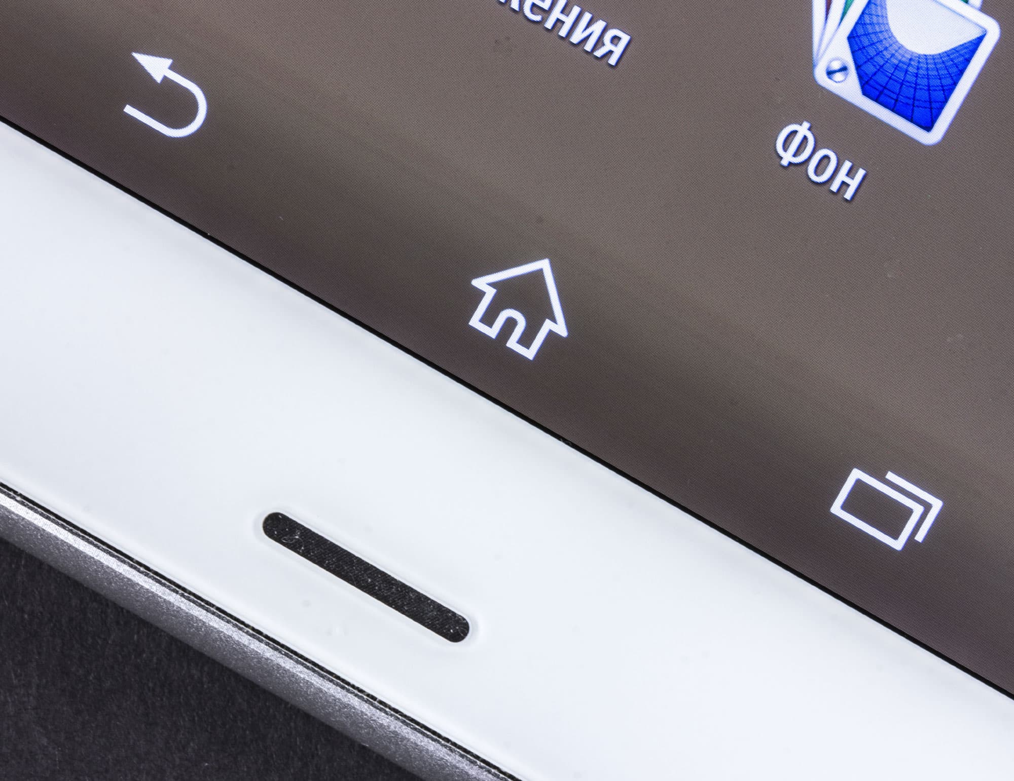 Лицевая поверхность экрана выполнена в виде стеклянной пластины с зеркально-гладкой поверхностью, устойчивой к появлению царапин. Судя по отражению объектов антибликовые свойства экрана не хуже, чем у экрана Google Nexus 7 (2013) (далее просто Nexus 7). Для наглядности приведем фотографию, на которой в выключенных экранах обоих устройств отражается белая поверхность (Sony Xperia Z3, как не трудно определить, — справа, далее их можно различать по размеру):