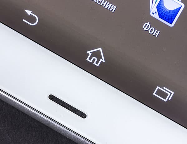 Внизу под экраном, как принято у Sony, нет аппаратных сенсорных кнопок; управление осуществляется с помощью виртуальных кнопок на экране. Так что здесь внизу можно найти только решетку нижнего динамика, да и то для него оставлено не так уж много места. Вообще, рамки вокруг экрана очень тонкие со всех сторон, так что корпус смартфона при столь большом по площади дисплее остался во вполне удобоваримых габаритах — как для среднестатистической человеческой руки, так и для кармана любого размера.