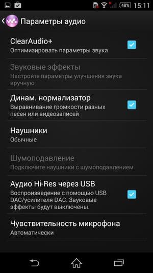По результатам тестирования смартфон Sony Xperia Z3 не оказался снабжен всеми декодерами, необходимыми для полноценного проигрывания большинства наиболее распространенных в сети файлов. А ведь первый смартфон серии, модель Xperia Z без проблем проигрывала все эти же самые файлы без необходимости прибегать к сторонним решениям. Здесь же для успешного их проигрывания придется прибегнуть к помощи стороннего проигрывателя — к примеру, MX Player. Правда, и в нем придется сначала изменить настройки, переключившись с аппаратного декодирования на программное или в новый режим под названием Аппаратный+ (поддерживается не всеми смартфонами), только тогда появится звук. Все результаты сведены в таблицу.