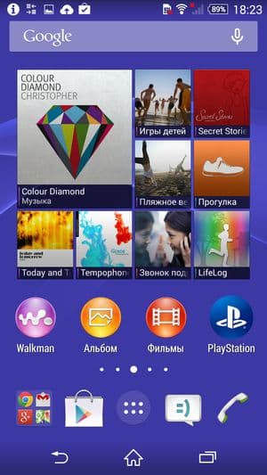 В качестве операционной системы используется свежая версия программной платформы Google Android 4.4.4 KitKat, поверх которой традиционно установлен собственный фирменный графический пользовательский интерфейс. Внутреннее обустройство оболочки, все меню, пункты настроек и всплывающие контекстные подменю — все осталось точно таким же. Однако внешне оболочка претерпела значительные изменения. Раньше элементы графического интерфейса у Sony были прорисованы достаточно мелко. Теперь, неожиданно, все элементы на экране, и главное, сами иконки приложений, стали выглядеть гораздо крупнее и четче. Шрифты увеличились, такие внезапные преобразования пошли смартфону только на пользу. Имеются и менее бросающиеся в глаза, но в некотором смысле более полезные доработки. Наконец-то в меню появилась, например, функция перезагрузки аппарата, ведь до этого только смартфоны Sony страдали отсутствием такой возможности. При необходимости перезагрузки аппарата необходимо было сначала выключить, а затем включить смартфон, что раздражало.