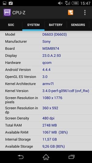 Как и у предыдущего флагмана, аппаратная платформа Sony Xperia Z3 строится на базе однокристальной четырехъядерной системы (SoC) Qualcomm Snapdragon 801 с четырьмя ядрами Krait 400. Правда, у Sony Xperia Z2 максимальная частота процессорных ядер составляла лишь 2,3 ГГц, а у Sony Xperia Z3 она увеличена до 2,5 ГГц. Объясняется это тем, что здесь используется немного более продвинутая версия Qualcomm Snapdragon 801 (MSM8974AC).