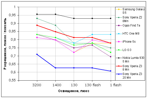 Смартфон попал к нам даже до официального представления в России, а посему вспоминается случай с Sony Z1 Compact, камеру которого мы не совсем заслуженно «зарубили». Проблема была в том, что из-за «сырости» образца хорошие снимки получались через раз, а то и через три. Скорее всего, дело там было в прошивке камеры, которая недостаточно адекватно обрабатывала сигнал с датчика изображения, отчего на снимках присутствовал характерный смаз. Похожий эффект возникает при вращении камеры вокруг оптической оси на относительно длинных выдержках, при этом резкость заметно ухудшается от центра к краям кадра. В итоге снимать камерой наверняка можно было разве что со штатива. Но у более поздних экземпляров смартфона камера стала заметно лучше.