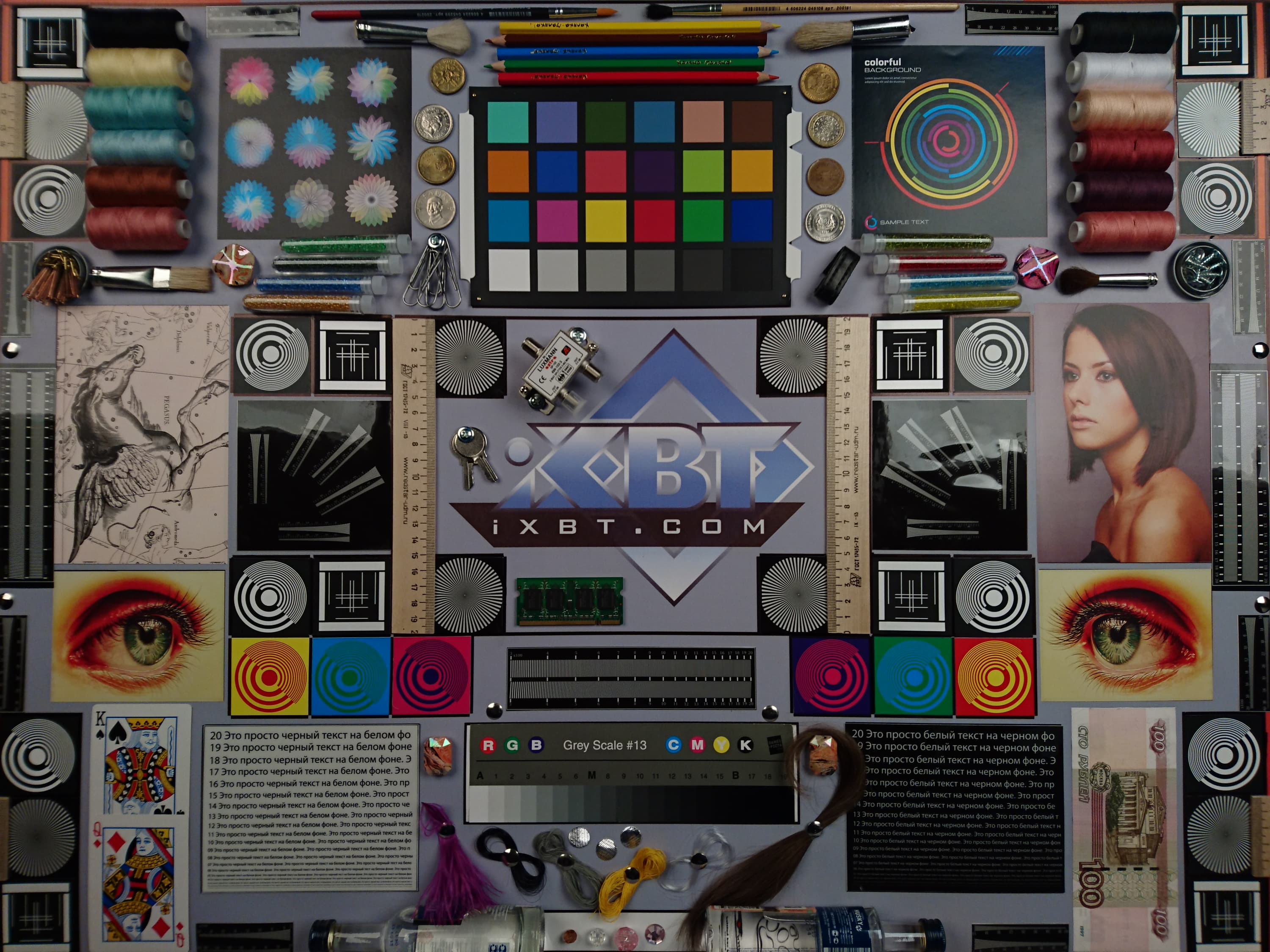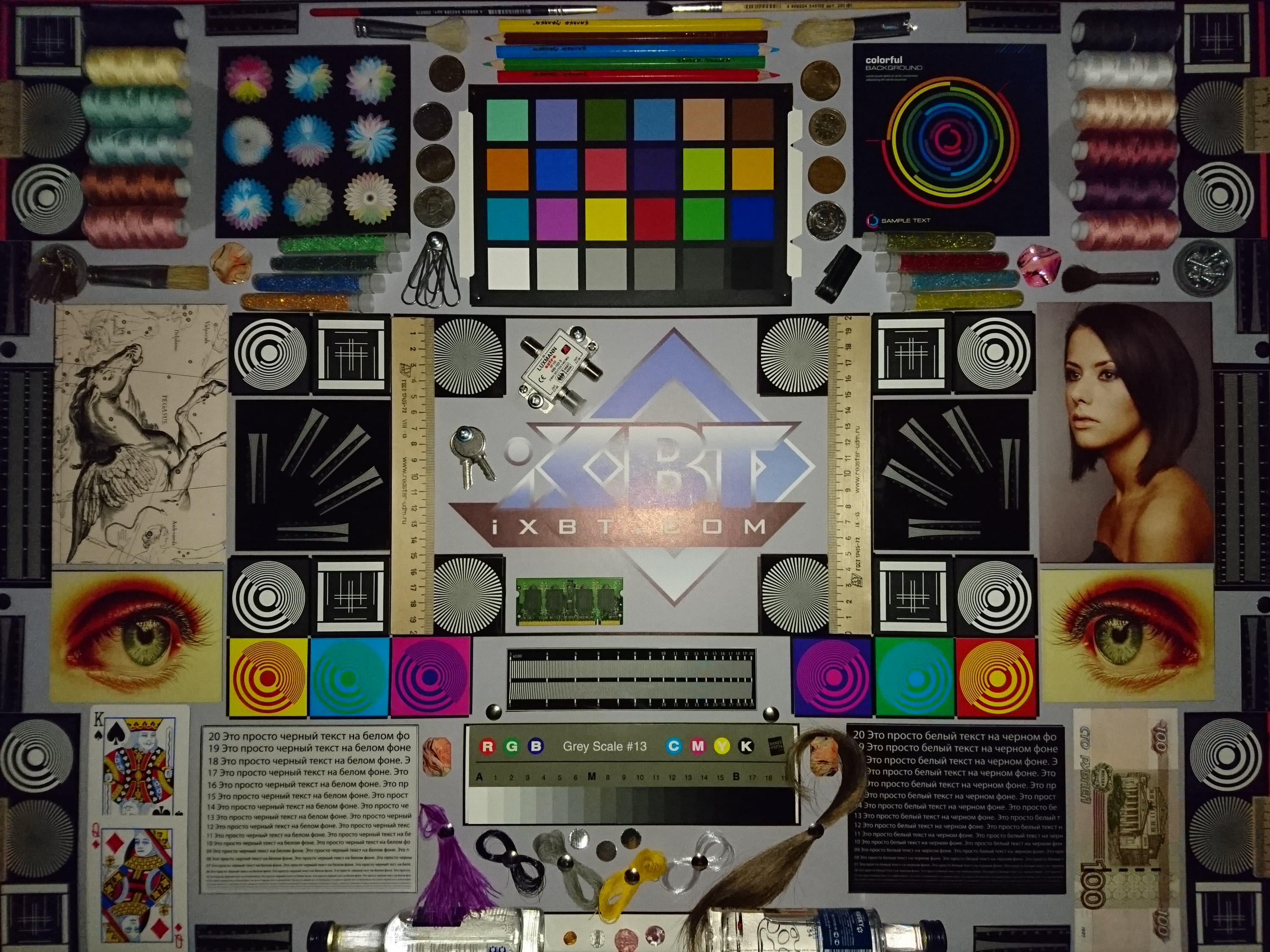 Отметим хорошую равномерность яркости и цветового тона белого поля. И тестовая картинка: