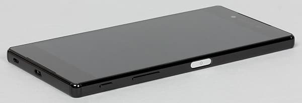 Аппаратные кнопки расположены на противоположной грани, их здесь традиционно три, поскольку Sony продолжает поддерживать идею о необходимости выделенной фотокнопки. Две кнопки обычные, выпирающие за пределы корпуса и, надо заметить, достаточно жесткие, а вот третья — совершенно плоская, вслепую ее не нащупать. Дело в том, что в новом поколении семейства Xperia Z появился столь удобный и становящийся уже стандартом инструмент для разблокировки, как сканер отпечатков пальцев. Он также поддерживает стандарт FIDO — авторизацию посредством отпечатка пальца для совершения онлайн-платежей. Правда, площадка сканера ограничена шириной кнопки питания, врезанной в боковую грань, так что к работе со сканером столь необычной формы придется поначалу привыкать.