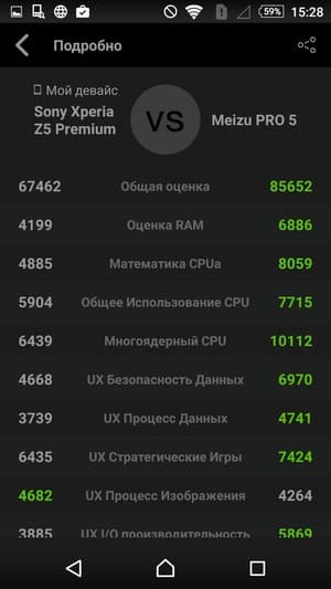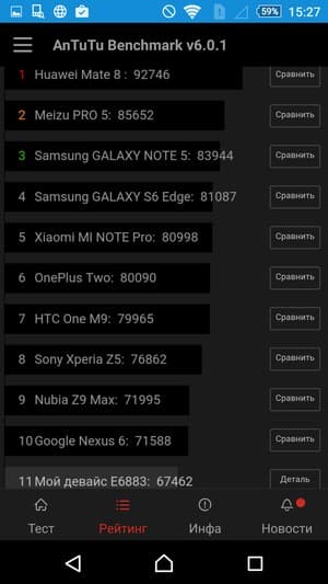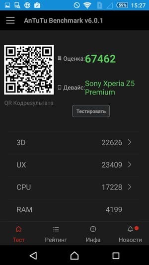 По результатам AnTuTu рекордсменом среди современных флагманов Sony Xperia Z5 Premium не является. Наш тестовый экземпляр набирает менее 70К очков там, где лидеры демонстрируют 85К и более.
