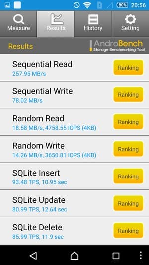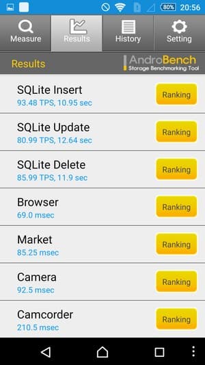 Результаты теста AndroBench на скорость работы с памятью: