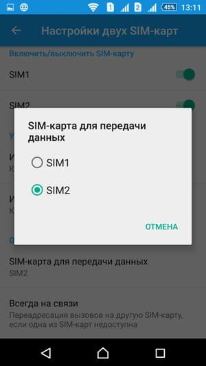 Смартфон поддерживает работу с двумя SIM-картами, но привязать к конкретной карте можно лишь функцию передачи данных, а для голосовых вызовов и текстовых сообщений необходимо каждый раз выбирать SIM-карту в соответствующем интерфейсе при отправке. В целом это совершенно не вызывает раздражения, но кому-то может не хватать такой очевидной функциональности, как изначальная привязка тех или иных функций к конкретным картам.