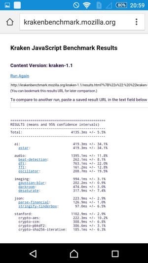 Что касается бенчмарков для оценки скорости движка javascript, то стоит всегда делать скидку на то, что в них результаты существенно зависят от браузера, в котором запускаются, так что сравнение может быть истинно корректным только на одинаковых ОС и браузерах, а такая возможность имеется при тестировании не всегда. В случае с ОС Android мы всегда стараемся использовать Google Chrome.