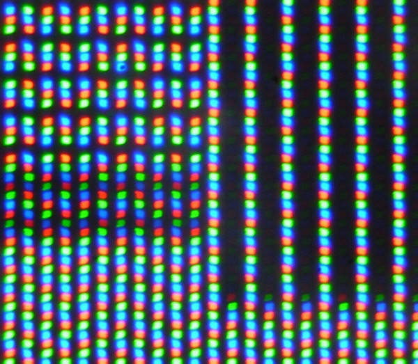 В данном экране используется матрица типа IPS. Микрофотографии демонстрируют типичную для IPS структуру субпикселей:
