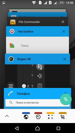Телефонное приложение поддерживает Smart Dial, то есть во время набора телефонного номера сразу осуществляется и поиск по контактам. Поддерживается ввод текста методом безотрывного скольжения от буквы к букве (Swype), а также можно уменьшить в размерах и приблизить к одному из краев дисплея виртуальные клавиатуры для удобства управления пальцами одной руки. Вид и организацию самой клавиатуры традиционно для смартфонов Sony можно выбрать из нескольких возможных вариантов. Режим так называемых «малых приложений» позволяет выводить некоторые штатные программы, такие как калькулятор, таймер, календарь и даже браузер, в виде отдельных маленьких окон с изменяемым размером. Таких окошек можно открывать по нескольку штук, то есть, по сути, это такой режим многооконности, но не для любых приложений.
