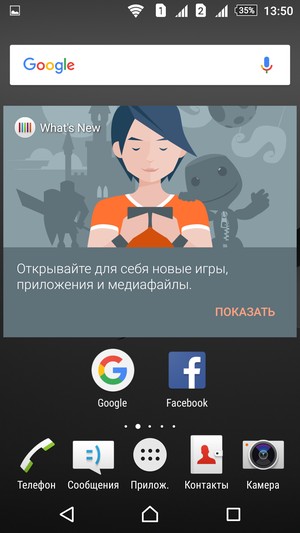 В плане программной платформы отличий от обычной версии Z5 нет никаких. Здесь в качестве операционной системы используется та же пятая версия Google Android (Lollipop 5.1.1) с собственной оболочкой. Оболочка хорошо знакома по предыдущим поколениям смартфонов Sony, заметных отличий от модели к модели не появляется, хотя по мелочам что-то все же меняется. Например, здесь, как и в обычной Xperia Z5, вдруг исчезла привычная выдвигающаяся слева навигационная панель в меню приложений. Крайний слева рабочий экран теперь содержит крупный виджет под названием What’s New, предлагающий анонсы наиболее интересных (по мнению разработчиков) программ и игр. Меню малых приложений, вызываемое там же, где находится меню последних открытых программ, осталось на своем месте, но внешний вид его изменился, хотя функциональность осталась той же самой. В целом разработчики Sony не вводят кардинальных изменений в свой интерфейс, чтобы владелец любой из старых моделей флагманской серии Xperia мог легко «пересесть» на более новую модель.