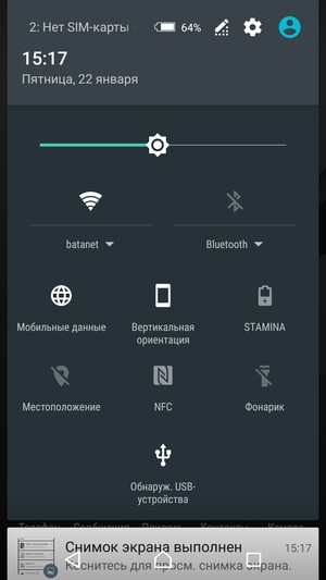 Также в аппарате есть поддержка Bluetooth 4.1, NFC, поддерживается два диапазона Wi-Fi (2,4 и 5 ГГц) и скоростной режим 2×2 MIMO, Wi-Fi Direct, можно организовать беспроводную точку доступа через каналы Wi-Fi или Bluetooth. Разъем Micro-USB поддерживает спецификацию USB 2.0 и подключение внешних устройств в режиме USB OTG, но для этого необходимо вручную запускать поиск устройств через специальный пункт в настройках.