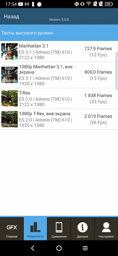 Все результаты, полученные нами при тестировании смартфона в самых свежих версиях популярных бенчмарков, мы для удобства свели в таблицы. В таблицу обычно добавляется несколько других аппаратов из различных сегментов, также протестированных на аналогичных последних версиях бенчмарков (это делается лишь для наглядной оценки полученных сухих цифр). К сожалению, в рамках одного сравнения нельзя представить результаты из разных версий бенчмарков, поэтому «за кадром» остаются многие достойные и актуальные модели — по причине того, что они в свое время проходили «полосу препятствий» на предыдущих версиях тестовых программ.