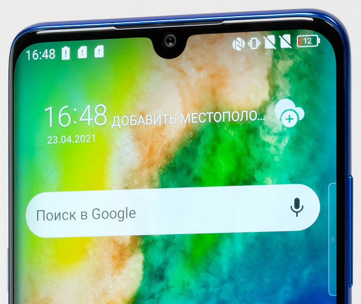 Фронтальная камера установлена в каплевидном вырезе в матрице экрана, расположенном прямо по центру.