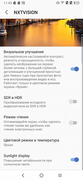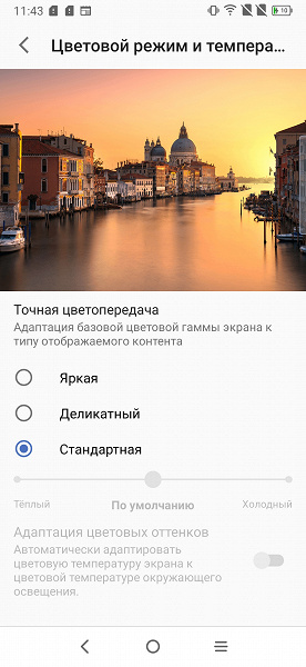 Разумеется, присутствует настройка (Ночной режим), позволяющая снизить интенсивность синей компоненты: