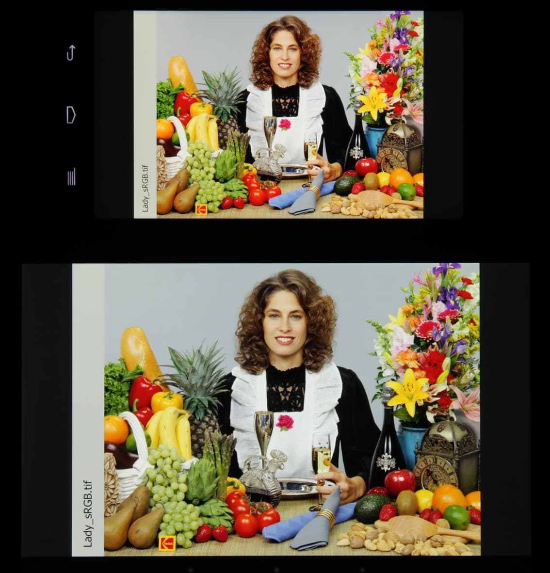 Видно, что цвета не сильно изменились у обоих экранов, и контраст под углом сохранился на высоком уровне. И белое поле: