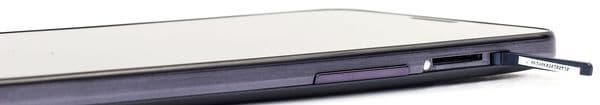 Механических аппаратных клавиш на боках устройства нашлось лишь две, и эти элементы управления, пожалуй, являются самым слабым местом описываемого смартфона. Во-первых, клавишу блокировки отчего-то разместили на верхнем торце — там, куда ни один из пальцев держащей смартфон руки не дотягивается. Во-вторых, обе клавиши имеют очень короткий и невнятный ход, мало выпирают из корпуса, поэтому при нажатии на них тактильного ощущения нет — это одни из самых неудобных виденных нами кнопок, и говорить о возможности работы с ними вслепую не приходится вовсе.
