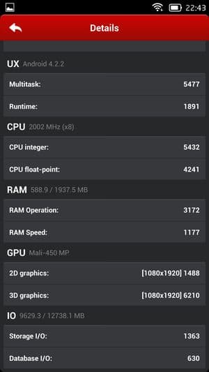 Беспрерывное чтение в программе FBReader (со стандартной, светлой темой) при минимальном комфортном уровне яркости (яркость была выставлена на 100 кд/м²) длилось до полного разряда аккумулятора около 12,5 часов, а при беспрерывном просмотре видео с YouTube в высоком качестве (HQ) с тем же уровнем яркости через домашнюю сеть Wi-Fi аппарат продержался почти 7,5 часов — показатели гораздо лучшие, чем у первых восьмиядерных смартфонов. В режиме 3D-игр смартфон продержался 3 часа, что не так уж и много, но все равно больше, чем у тех же Zopo 998 и THL T100S.
