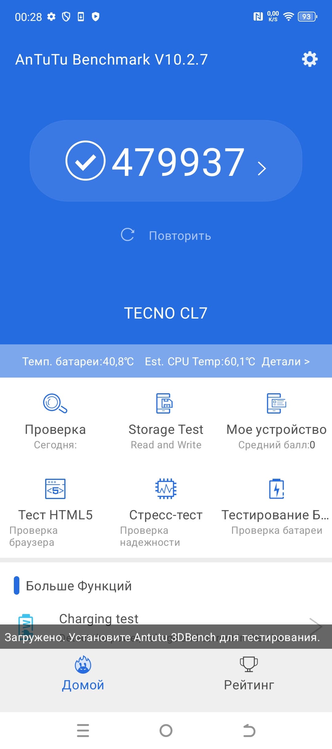 Тестирование в комплексных тестах AnTuTu и GeekBench: