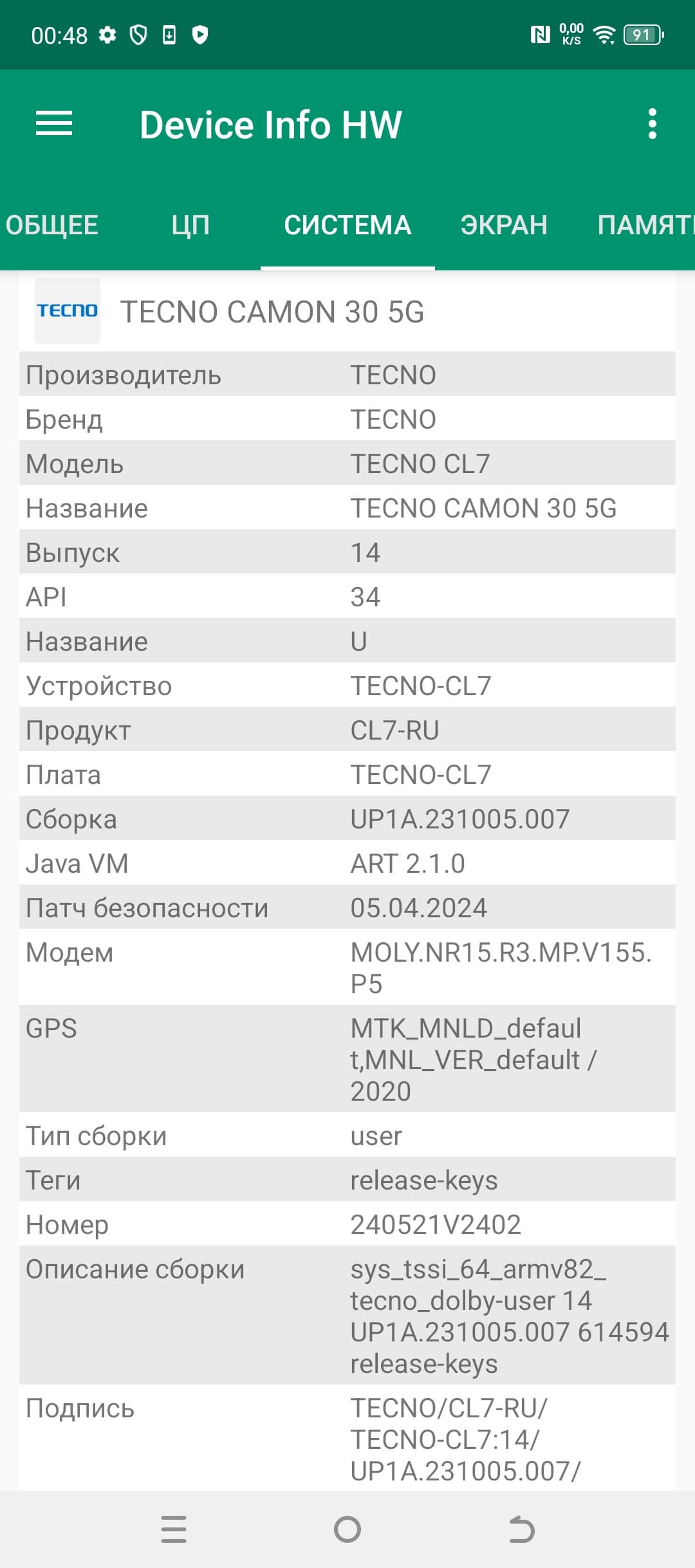 Основные характеристики Tecno Camon 30 5G (модель CL7)