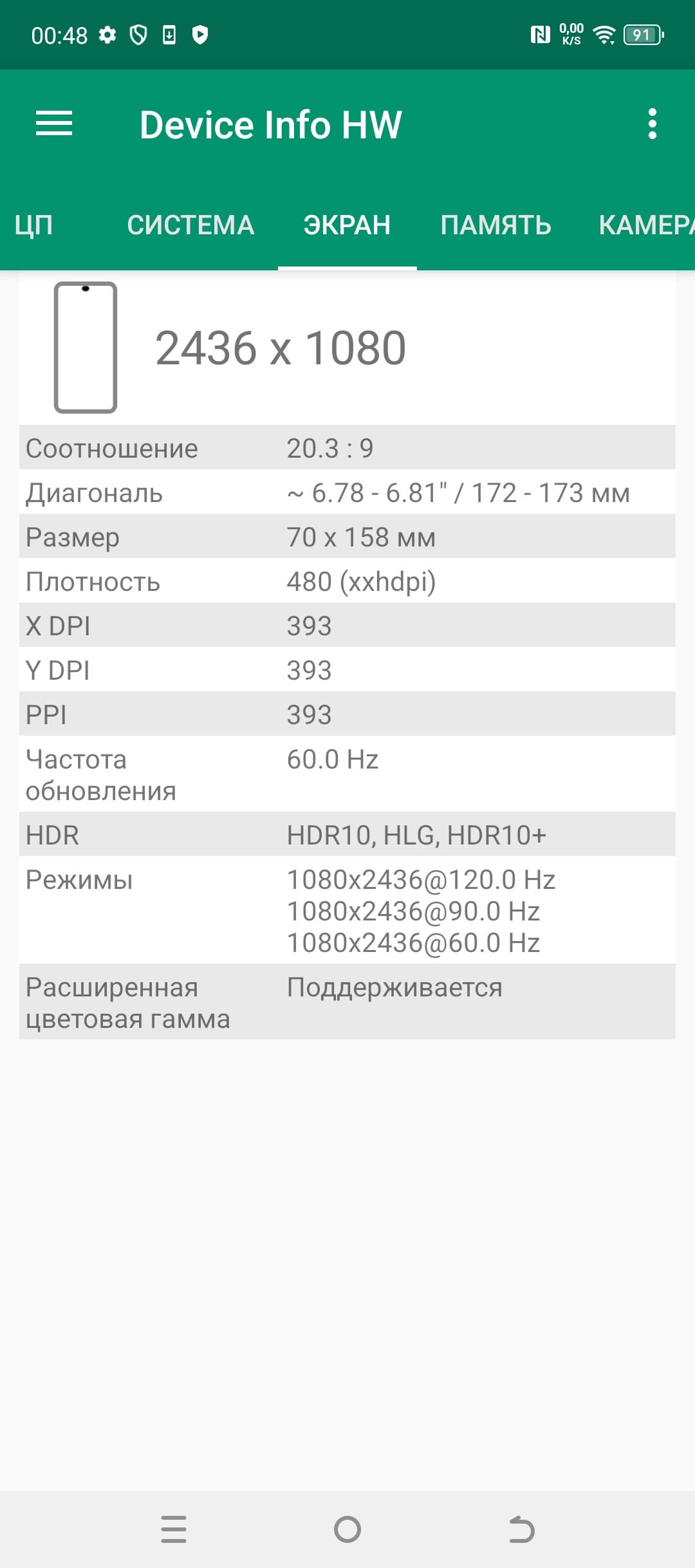 - Сенсорный дисплей AMOLED, 6,78″, 1080×2436, 20:9, 393 ppi, 120 Гц