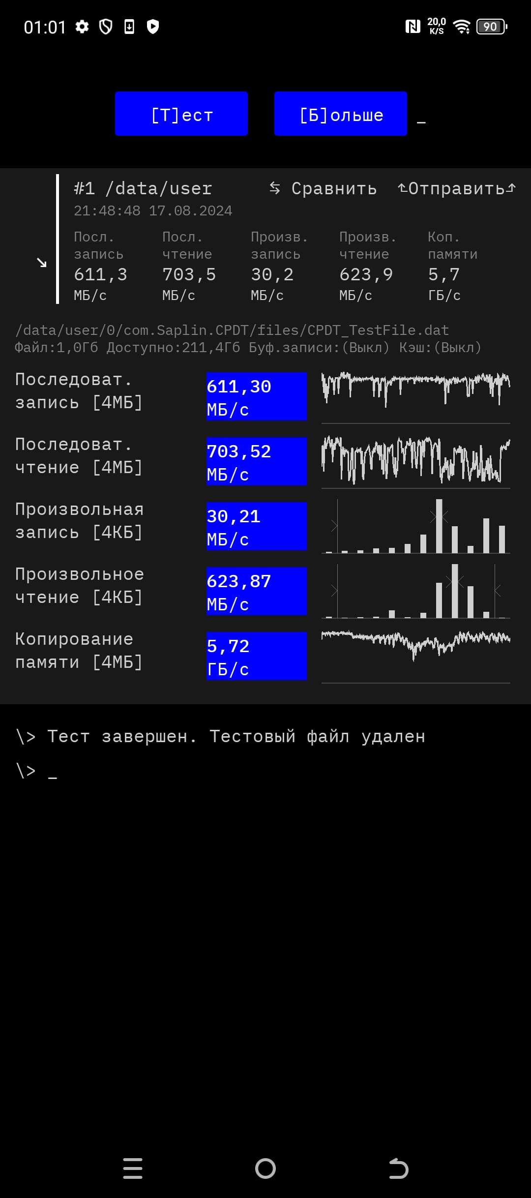 Результаты тестирования скорости памяти:
