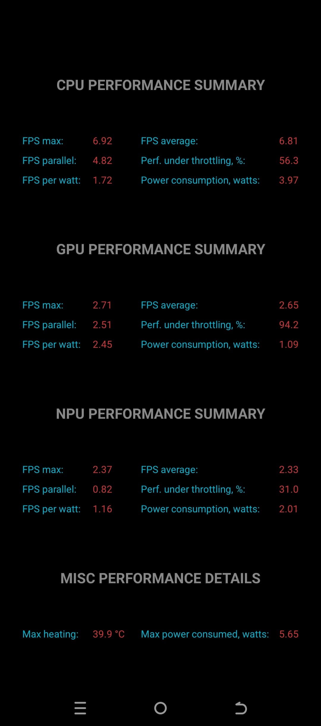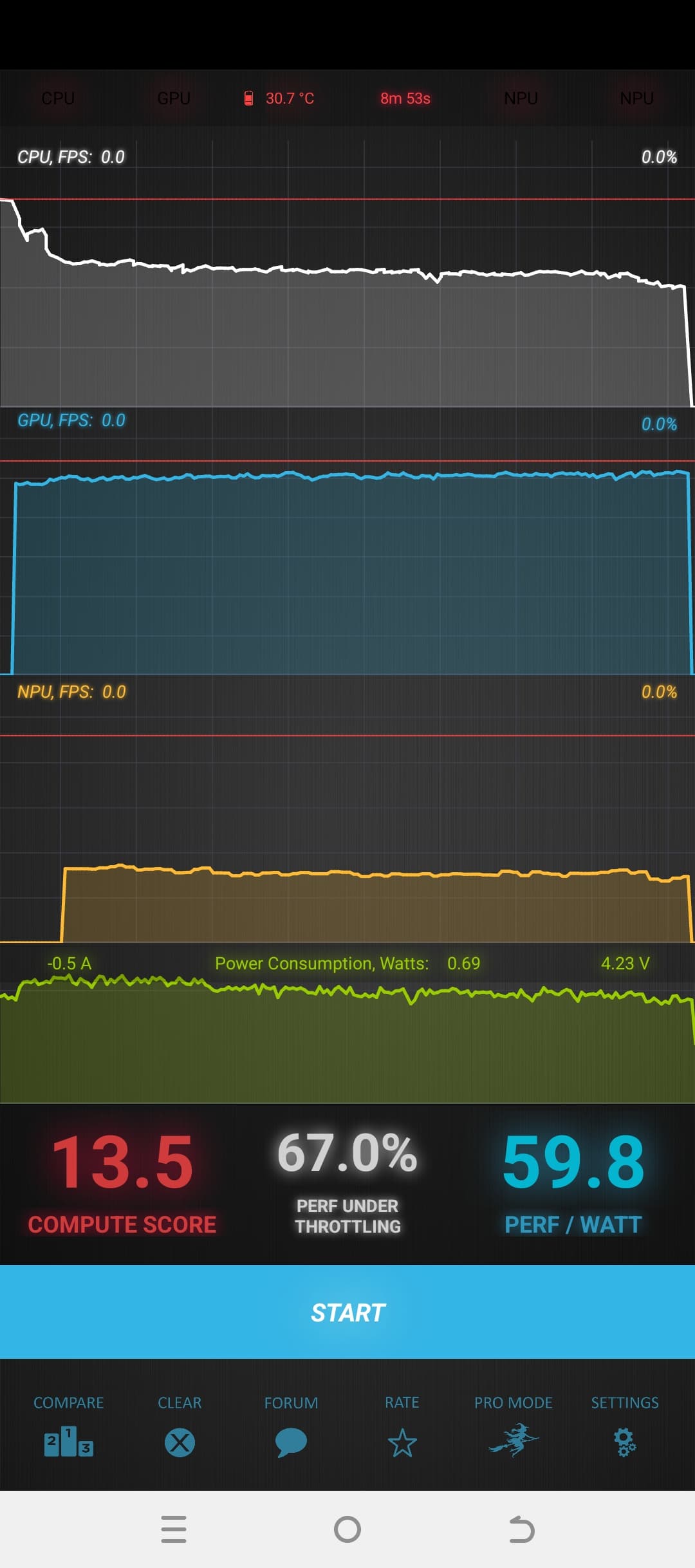 Тест на снижение производительности при нагреве мы проводим с помощью программы Burnout Benchmark, которая позволяет нагружать CPU, GPU и NPU: