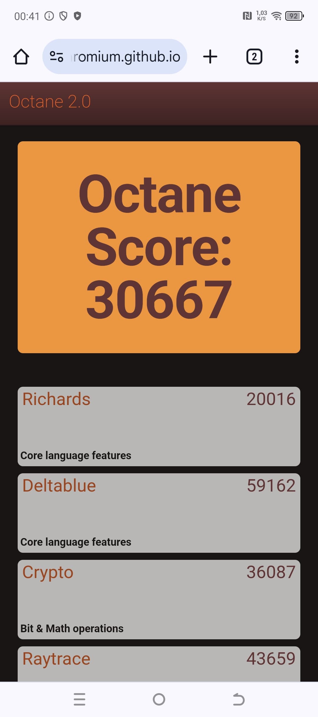 | Google Octane 2 (больше — лучше) | 30667 | 7230 | 19467 | 24106 | 52617 |