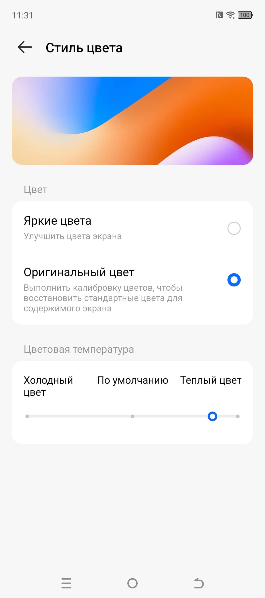 Фотография выше получена после выбора профиля Оригинальный цвет в настройках экрана. Всего профилей два.