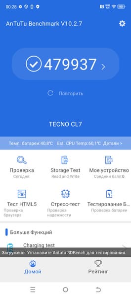 | AnTuTu (v10.x) (больше — лучше) | 479937 | 620852 | 1297546 | 792657 | 1033512 |