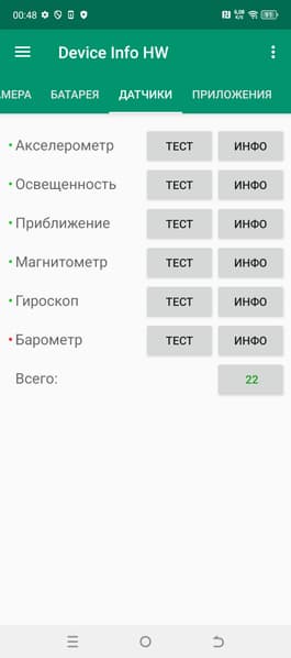 - Датчики приближения и освещения, магнитного поля, акселерометр, гироскоп