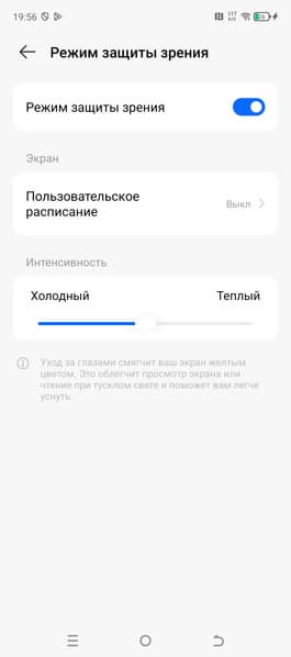 Разумеется, присутствует настройка (Режим защиты зрения), позволяющая снизить интенсивность синей компоненты. В принципе, яркий свет может приводить к нарушению суточного (циркадного) ритма (см. статью про iPad Pro с дисплеем 9,7 дюйма), но все решается снижением яркости до низкого, но еще комфортного уровня, а искажать цветовой баланс, уменьшая вклад синего, нет абсолютно никакого смысла.
