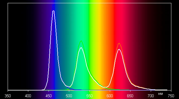 В этом случае спектры компонент (то есть спектры чистых красного, зеленого и синего цветов) очень хорошо разделены: