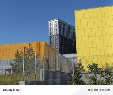 Эта камера с сенсором 50 Мп (1/1,57″) и объективом f/1,9 имеет и адекватный фазовый автофокус, и даже оптический стабилизатор. По умолчанию она выдает снимки в разрешении 12,5 Мп с функцией объединения пикселей 4-в-1, но можно переключиться и на съемку в ином разрешении. Вот только большие снимки выдаются не в положенном разрешении 50 Мп, а в 100 Мп. Согласно описанию, это называется «алгоритмом съемки повышенной четкости». В принципе, выглядит результат действительно неплохо, обесцвеченные шумы видны, но не слишком мешают, детализация явно выше, изображение достаточно четкое по всему полю кадра… Однако справедливо это почему-то лишь для некоторых фотографий (например, для последней пары в галерее ниже), в остальных же случаях 100-мегапиксельные фотографии представляют собой грубо «апскейлнутые» 12-мегапиксельные варианты. Мы так и не поняли, от чего зависит результат, но в общем случае не рекомендуем связываться с полноразмерными фото, тем более что выигрыш по детализации не настолько уж большой.